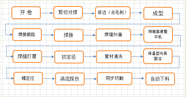 長(zhǎng)久的合作,長(zhǎng)久的誠(chéng)信,服務(wù)周全已經(jīng)是漢高的中心品牌,在中國(guó)最出名不銹鋼管材:久力,武進(jìn),鎮(zhèn)海石化,三花集團(tuán)也跟我們漢高機(jī)械合作,那是因?yàn)槲覀兊膬r(jià)格的便宜?是因?yàn)槲覀兊募夹g(shù),質(zhì)量,服務(wù),客戶的要求全都做到客戶心中所要的目的。有很多客戶都不太懂焊管機(jī)設(shè)備的工藝是怎樣的。下面由我來(lái)簡(jiǎn)單介紹下: