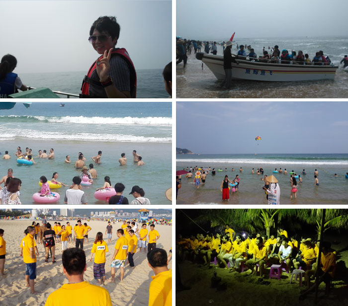 第一天就來到陽江大角灣,還玩撕名牌游戲,場(chǎng)面刺激,同事們打打鬧鬧,十分融洽。