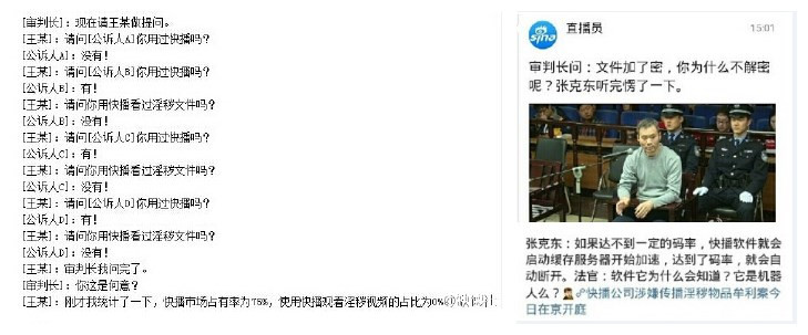 公訴人:用百度搜索淫穢詞+快播,搜索結(jié)果的吹超過(guò)4200萬(wàn)的結(jié)果,可見(jiàn)快播在傳播淫穢視頻方面的巨大影響。王欣:這個(gè)沒(méi)有任何意義,您可以用百度搜素淫穢詞+QQ看有多少結(jié)果。辯護(hù)人和王欣的戰(zhàn)斗力十足,這是要把馬化騰和李彥宏都拉下水的節(jié)奏。 還有陌陌和淘寶也不幸躺槍。