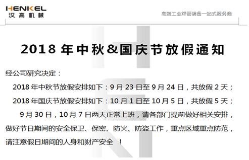 漢高機(jī)械在此祝大家國(guó)慶節(jié)快樂(lè)!國(guó)慶佳節(jié)喜來(lái)到,為你綻放快樂(lè)的煙花,愿你快樂(lè)每時(shí)刻;為你放飛健康和平鴿,愿你身體健康壯如牛;為你飄揚(yáng)成功的彩旗,愿你財(cái)源廣進(jìn),事業(yè)順暢步步高。國(guó)慶快樂(lè)!