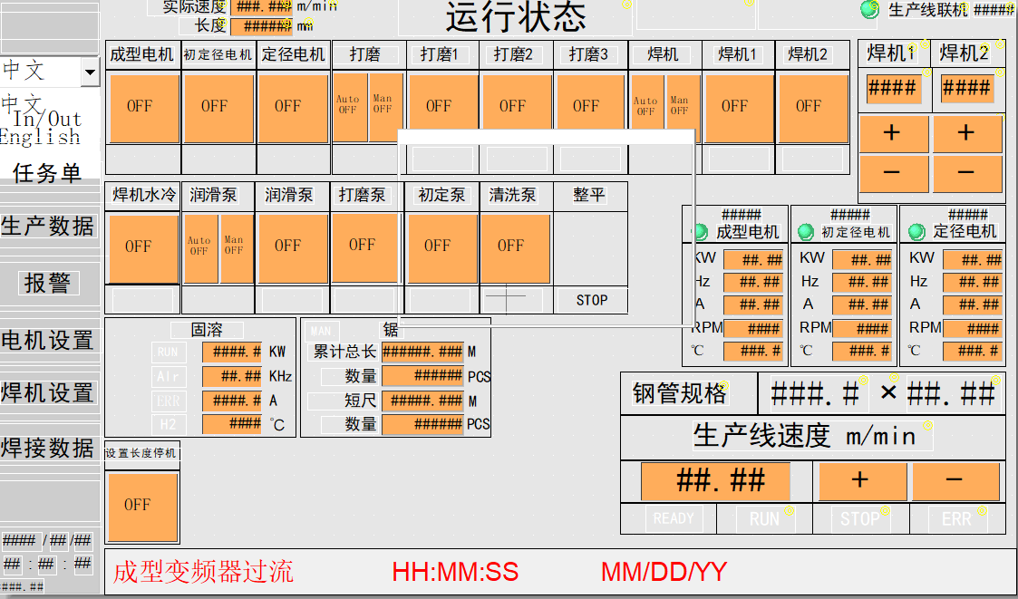 2、電機(jī)故障檢測(cè);變頻器檢測(cè)電機(jī)出現(xiàn)異常,觸發(fā)保護(hù)停機(jī)