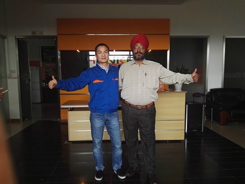 2015年11月16日,我們漢高機(jī)械副總經(jīng)理肖遠(yuǎn)平先生親自接待了 Mr Singh先生,同行的還有我們的外貿(mào)業(yè)務(wù)員謝鑫梅小姐和 Mr Singh先生的中國朋友。按照行程計劃表,我們首先帶 Mr Singh先生參觀了我們的工廠,展示了我們的內(nèi)整平裝配區(qū)域,制管機(jī)裝配區(qū)域,光亮退火裝配區(qū)域,倉庫區(qū)域,發(fā)貨區(qū)域,休息區(qū)域等,Mr Singh先生高度贊許了我們的5S管理體制,表示將學(xué)習(xí)應(yīng)用我們的成功經(jīng)驗在他們的車間管理體制上。在這個過程中,我們一一向客戶詳細(xì)展示了設(shè)備,包括設(shè)備的構(gòu)造,配件,電氣設(shè)備,工作原理,操作事項等。隨后我們帶Mr Singh先生到了會議室,在準(zhǔn)備產(chǎn)品PPT展示的同時帶領(lǐng)客戶參觀了我們的產(chǎn)品櫥窗,親手感受我們的產(chǎn)品效果。一切準(zhǔn)備就緒后,我們開始向客戶做產(chǎn)品presentation,了解客戶的各方面要求并記錄下來方便為客戶做技術(shù)方案和報價。會談在愉快的氣氛中結(jié)束了,我們開始下一個主題。我們帶客戶去了我們在佛山本地的客戶工廠,了解設(shè)備的投入使用情況,運(yùn)行情況和成品情況。由于提前做好了溝通工作,我們佛山的老客戶已經(jīng)為我們安排好了參觀行程和隨行工程師講解,讓印度客戶更深入的了解我們的設(shè)備。印度客戶對我們的高效率,良好的溝通,清晰的展示,周到的服務(wù),產(chǎn)品的質(zhì)量等各方面都非常滿意,表示希望我們給他一個最好的價格,他很希望能與我們這樣誠信敬業(yè),有資質(zhì)有實力的公司長期合作,只要價格合適他就會陸續(xù)下單。肖經(jīng)理表示:No problem.We appreciate you.