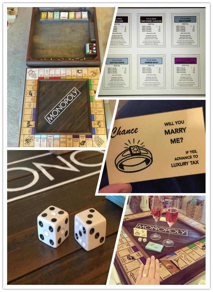賈斯?。ú皇悄莻€(gè)比伯...)和女票米哈爾從高中時(shí)代就是桌游“大富翁”的腦殘粉。他打算送給米哈爾一個(gè)新的大富翁棋盤,并借此向她求婚。這個(gè)大富翁棋盤絕壁是世上最獨(dú)一無二的,因?yàn)樗皇琴I的,而是賈斯汀花了三周時(shí)間親自設(shè)計(jì),并拜托做木匠的好基友打造而成,上邊的各種地名全是他和女票一起長大或者去過的地方。為了確保求婚成功,他特意在游戲中設(shè)計(jì)了一張機(jī)會(huì)卡,對(duì)應(yīng)棋盤的第七格,上面寫著“你愿意嫁給我嗎?”又為了確保女票能在游戲中將骰子順利擲出“7”,他更是想了一個(gè)讓人哭笑不得的主意,見下圖左下角。于是女票就像掉入陷阱的小羊,妥妥地被賈斯汀套牢啦。其實(shí)這叫投其所好,如果你的女朋友熱衷于密室逃生的腦殘粉,就設(shè)計(jì)一場(chǎng)密室逃脫游戲?qū)⑺卫卫ё“伞?/span>