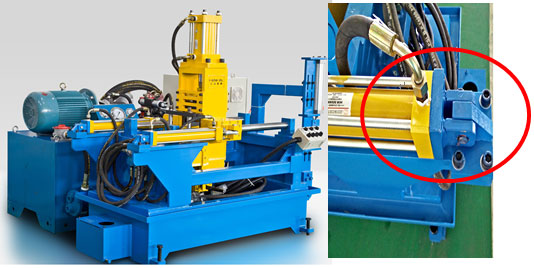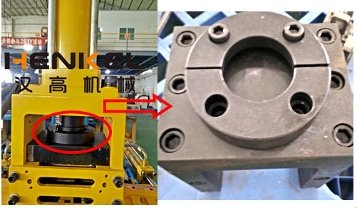 四、漢高正品的油缸連接座上,線切割油缸連接塊,保證了同心度又加強了穩(wěn)定性;仿制品則隨便用兩塊壓片固定,不安全的同時壓管效果也不好 。如下圖所示: