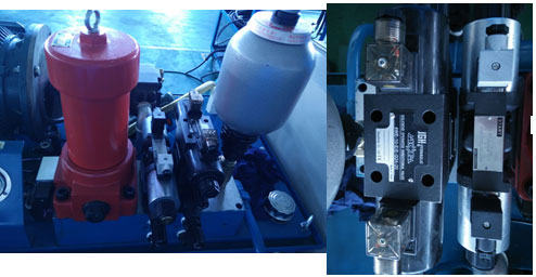 八、漢高正品的液壓站配件上,減壓閥,比例閥、電磁閥均采用臺灣久崗品牌;仿制品的液壓站上的配件均采用國產(chǎn)雜牌。如下圖所示: