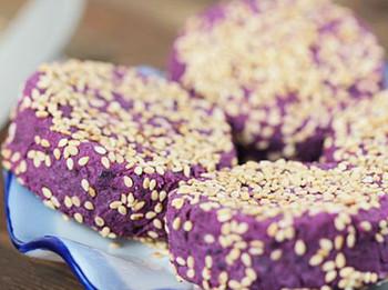 原料:紫薯4個(gè)、白芝麻