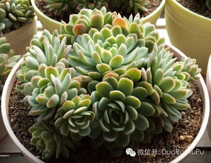 8. 爆盆:字面意思即多肉生長季節(jié)不斷長出側(cè)芽或瘋狂長大滿滿一盆、甚至略顯擁擠的最佳狀態(tài),多為易群生品種或護盆類小型多肉品種。
