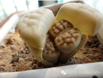 7. 蛻皮:貌似生石花種類才會蛻皮吧。等生石花長大到一定年齡后,屁股開花,皮脫掉一層,會長大一圈。
